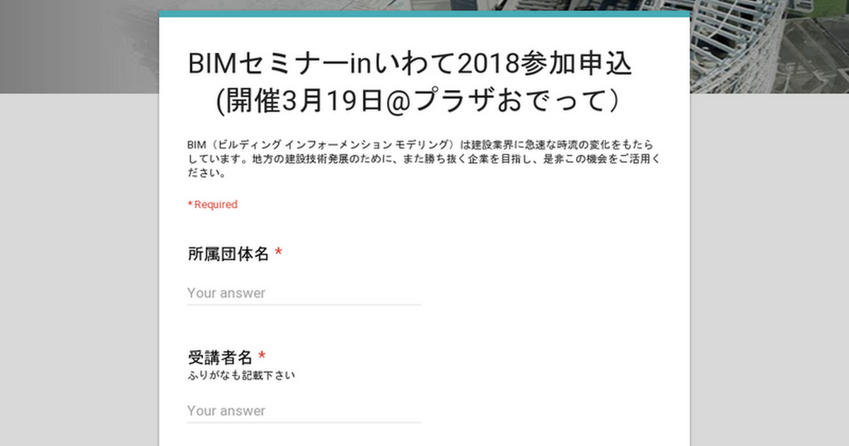 BIMセミナーinいわて2018参加申込 (開催3月19日@プラザおでって)